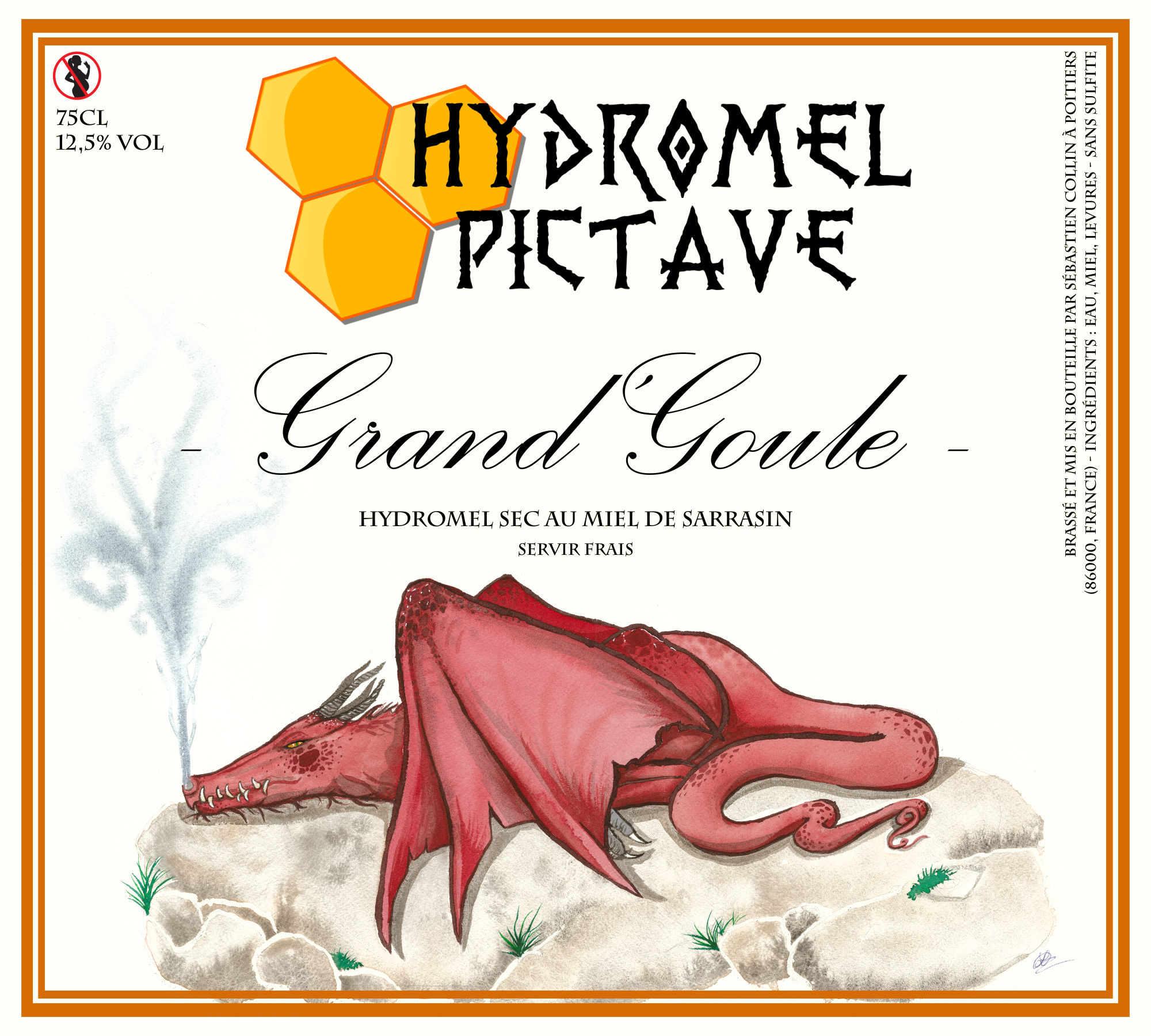 - La Grand’Goule, un hydromel au miel de sarrasin ; sa robe est cuivrée et ses saveurs sont sucrées épicées.