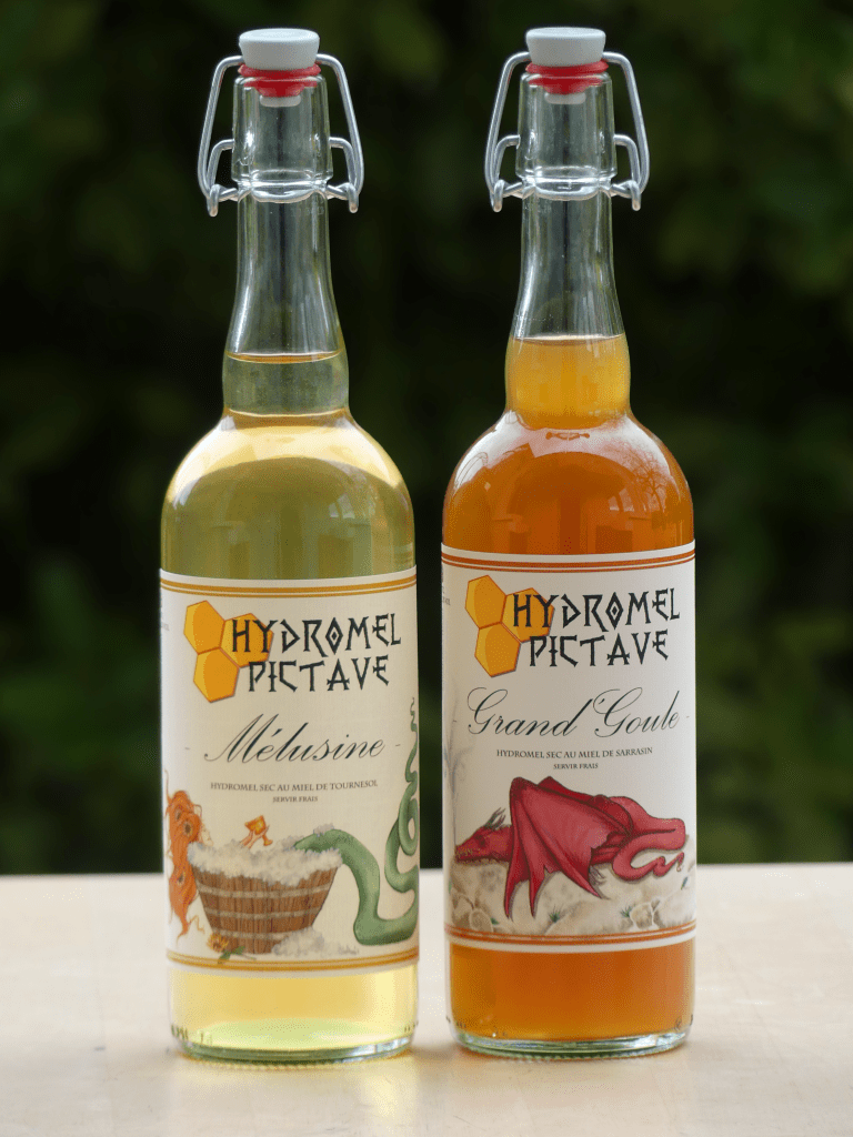 - La Mélusine, un hydromel au miel de tournesol ; sa robe est claire et ses saveurs sont florales et parfumées.